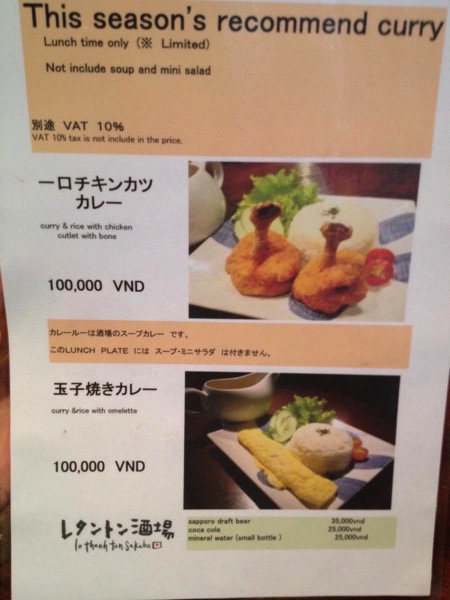 レタントン酒場といえば、ホーチミン市日本人街のレタントン通りに古くからある居酒屋というイメージですが、実はランチはカレー専門で提供しているのです!